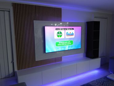An effective yet cost effective solution to make the most out that blank space on the wall! These designs are crafted together onsite from scratch! We can also tailor to your needs and make adjustments where necessary! No painting required however we recommend that the wall is clean and in good condition prior to fitment. Devices or accessories are an additional cost and packages are subject to an additional labor variation depending on the in person assessment and quote.